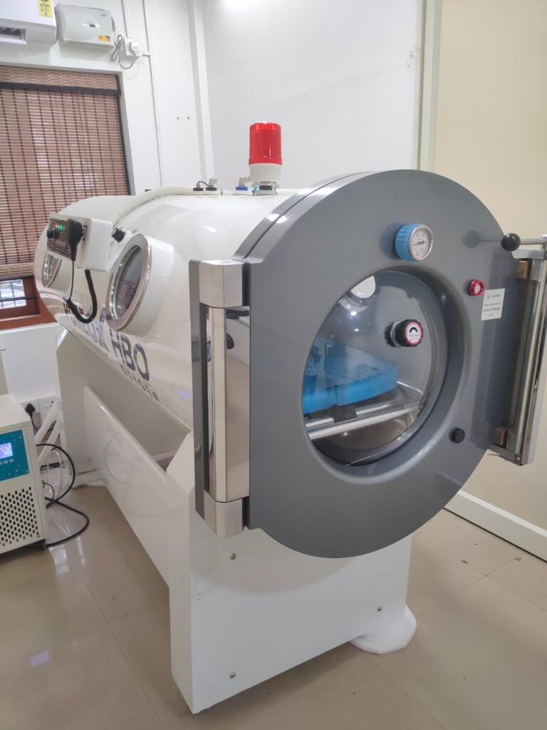 Hyperbaric Oxygen Therapy (HBOT) is a non-invasive medical treatment that enhances the body’s natural healing processes. During HBOT, patients breathe 100% pure oxygen in a pressurized chamber, allowing oxygen to dissolve more efficiently into the bloodstream. This increased oxygen delivery promotes healing in tissues where circulation is compromised.
